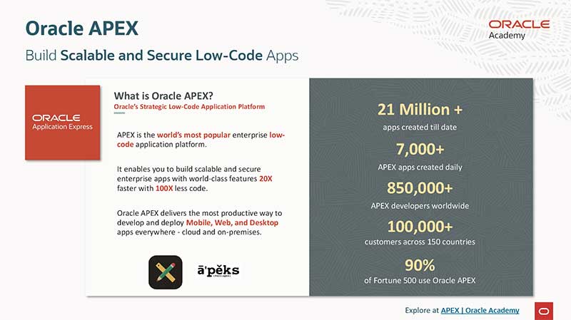 Oracle Academy - Oracle APEX (Low-code Application Development Platform)